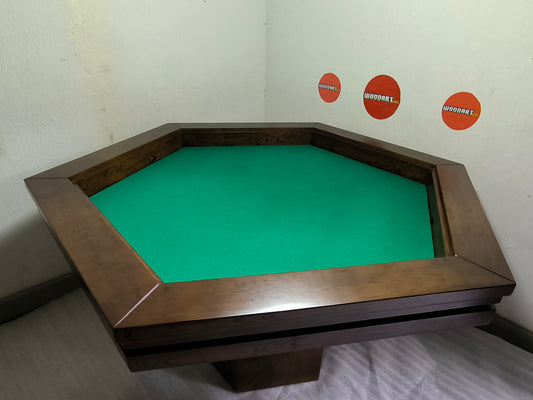 MESA HEXAGONAL PREMIUM EN MADERA DE PAROTA | EDICIÓN ESPECIAL POKER | 6 PERSONAS