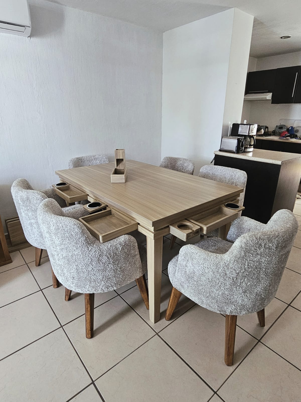 Comedor con cubierta removible incluida que se convierte en mesa de juego en segundos.