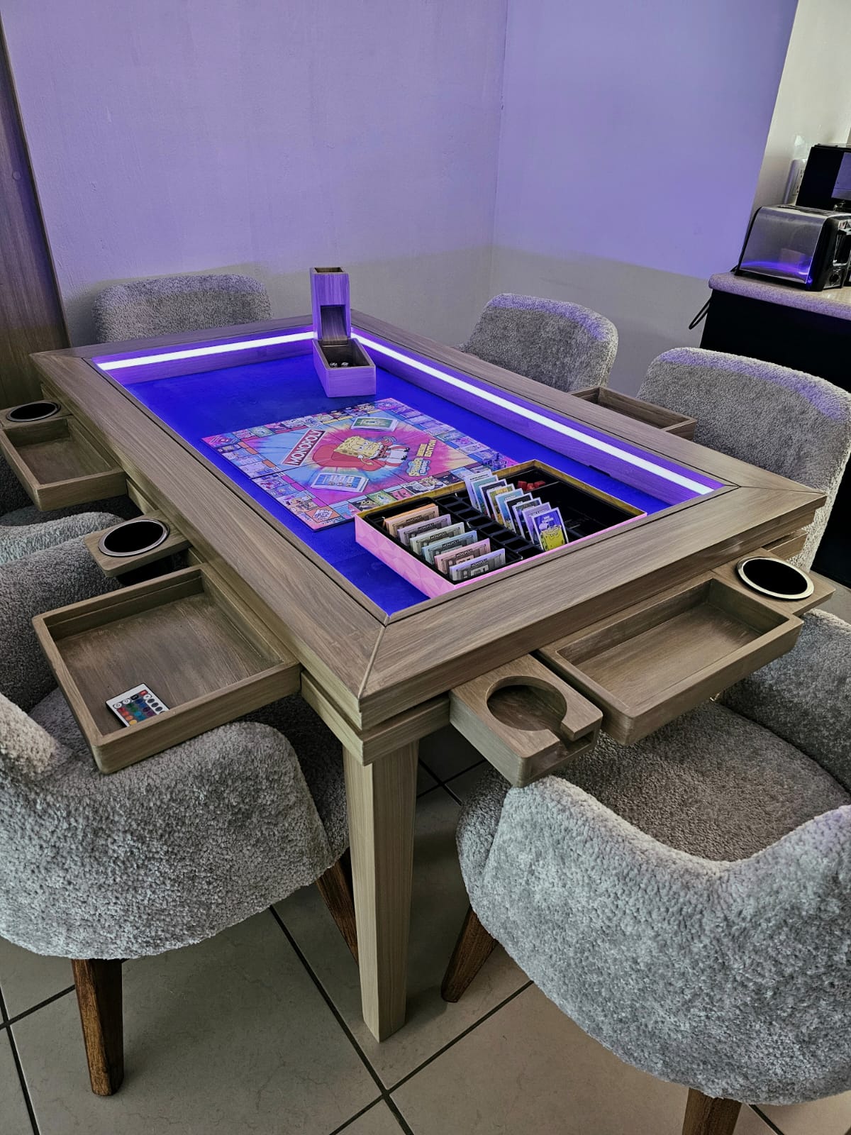 COMEDOR/MESA DE POKER RECTANGULAR 8 PERSONAS CON PORTAVASOS CON LUZ LED