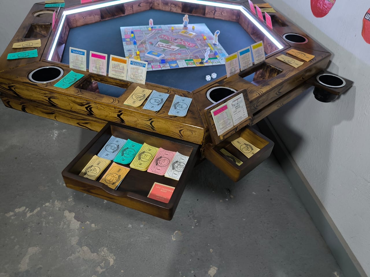 MESA DELUX HEXAGONAL CON LUZ LED CON PASA DADOS