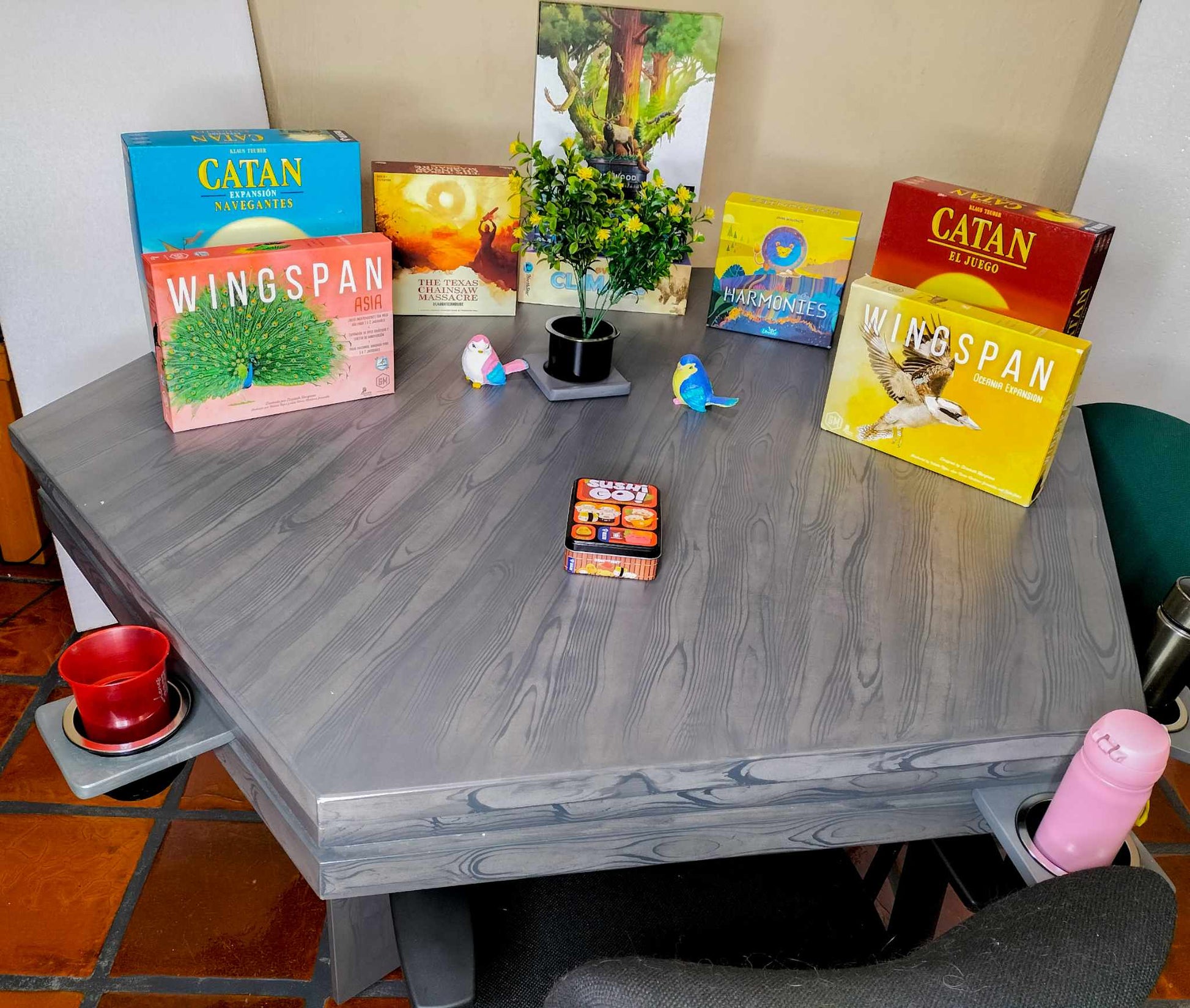 Mesa de juegos/comedor Hexagonal DELUX para 6 personas, CON PASA DADOS, PORTAVASOS INTERIORES, RIEL PARA ACCESORIOS EXTERIOR Y SOPORTE PARA CARTAS.