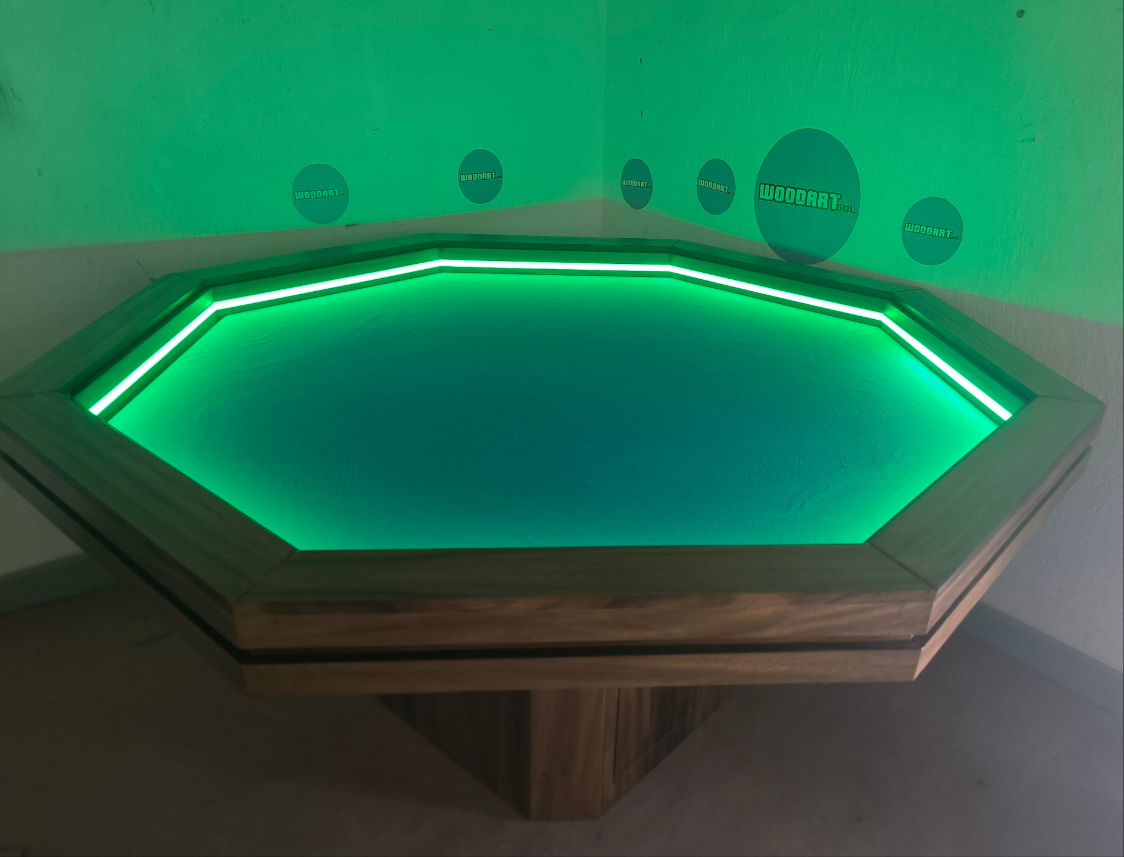 Mesa de juegos/comedor PREMIUM OCTAGONAL CON LUZ LED para 8 personas, cuenta con soporte para cartas.